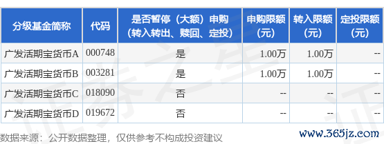 本站消息银易配资,4月23日广发基金管理有限公司发布《关于广发活期宝货币市场基金A类和B类基金份额调整机构投资者大额申购(含转换转入)业务限额的公告》。公告中提示,为保护基金份额持有人利益,自2025年4月24日起广发活期宝货币市场基金A类和B类基金份额调整机构投资者大额申购(含转换转入)业务限额,下属分级基金调整明细如下: